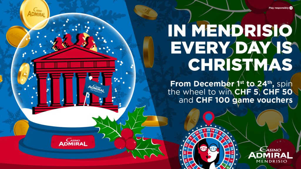 At the ADMIRAL Casino in Mendrisio, Christmas has never been so exciting! From December 1 to 24, 2023 all guests who enter the gambling house receive a promoticket worth CHF 5, 50 or 100 or a gift! Every day from 11 a.m. to 7 p.m. during the specified period, all visitors can spin the wheel […]